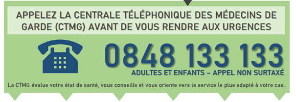 La Centrale Téléphonique des Médecins de Garde (CTMG) est le premier point de contact pour :